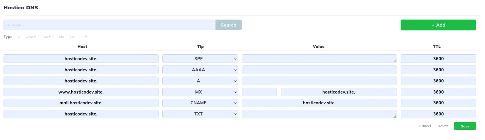 Uusi ominaisuus, joka on kehitetty Hostico-asiakastilille, antaa käyttäjille mahdollisuuden määrittää ja muokata itsenäisesti seuraavia DNS-tietueiden tyyppejä: