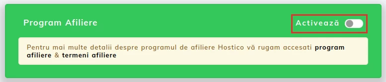 - Avoimella sivulla voit nähdä ikkunan, jossa voimme aktivoida Affiliate-ohjelman;