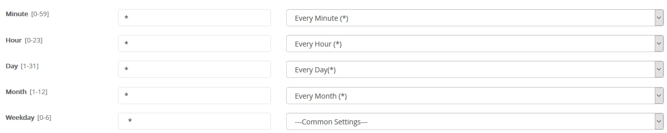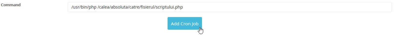 - Komennon Command kentässä määritellään haluttu suoritettava komento. Yleensä se osoittaa ennalta määritettyyn php-skriptiin palvelimella, jonka jälkeen painetaan "Add Cron Job" -painiketta.