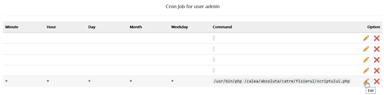 - Sen jälkeen cron-tehtävä voidaan tarkastella tai muokata sivun alaosassa kohdassa Cron-tehtävä käyttäjälle admin.
