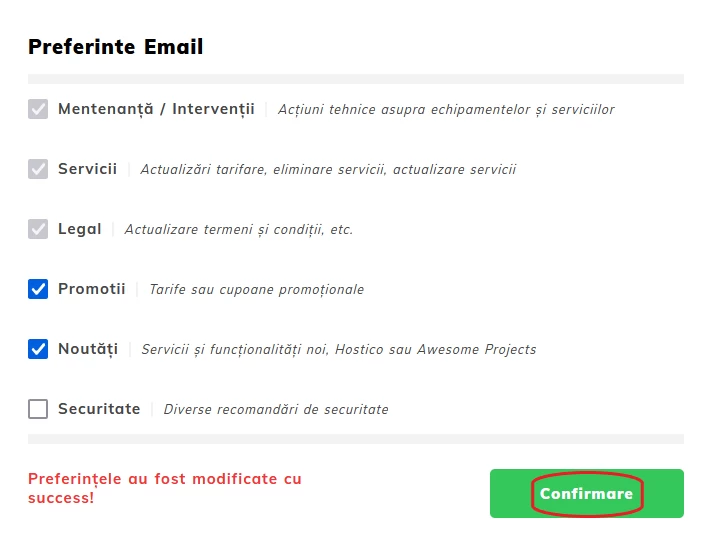 Päivitä sähköpostiasetuksesi Hostico-tilillä saadaksesi mukautettuja ilmoituksia ylläpidosta, palveluista, kampanjoista ja turvallisuudesta.