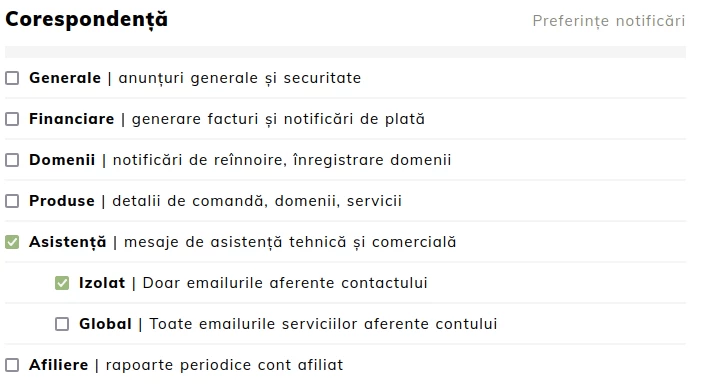 Tärkeää! Alayhteyshenkilöiden saadakseen teknisiä ja kaupallisia ilmoituksia (kirjeenvaihtoliput), Kirjeenvaihto-osituksessa Tukikenttä on oltava valittuna, mikä avaa automaattisesti kaksi lisävalintaruutua: